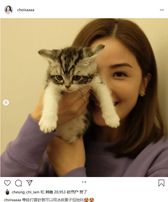 1月17日晚,阿Sa蔡卓妍在个人社交账号晒出猫咪照,同时也曝光了无名指上的戒指,疑似与百亿太子爷好事将