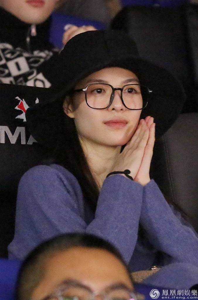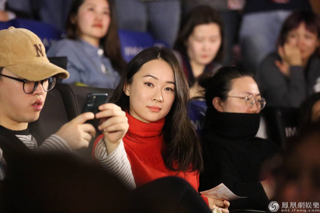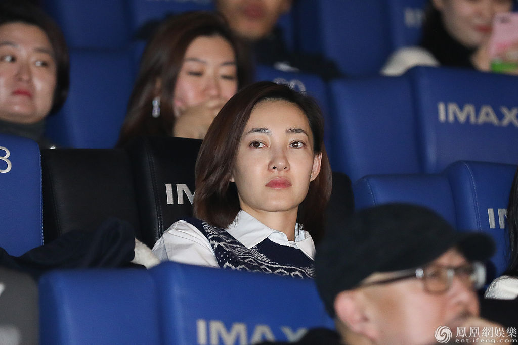 霍思燕穿红衣观影。