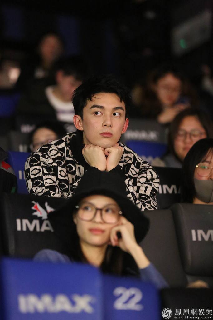 李光洁认真看电影。