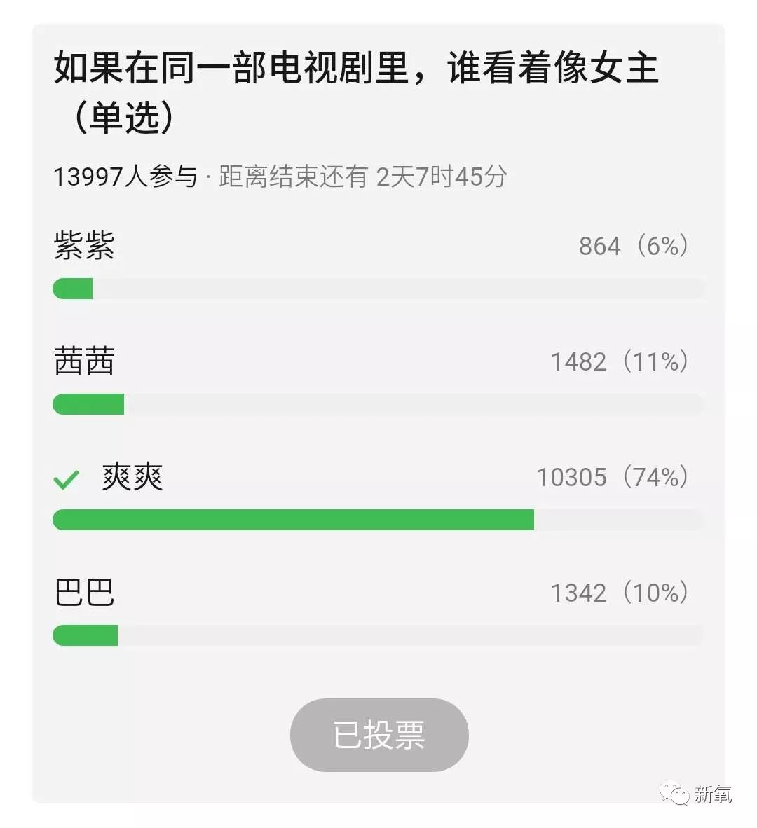 居然有上万人投票选择了郑爽。