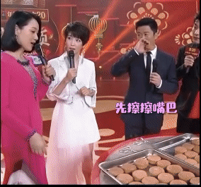 当他吃完两口,还一本满足地用袖子擦了擦嘴,全然不顾自己在台上的形象。