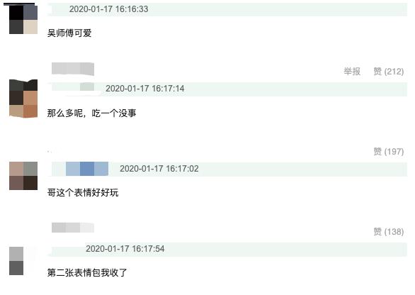 不少网友看到后表示,"吴师傅可真可爱",还争相收下了吴京的表情包。