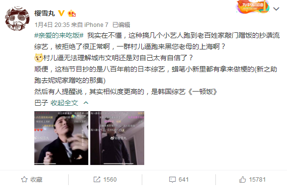 真人秀本质仍旧是“秀”,需要故事性与冲突才好看。 蹭饭节目的冲突点,就是素人对明星贸然敲门的反应。 网友论战,则主要围绕上海人高姿态、看不起人。