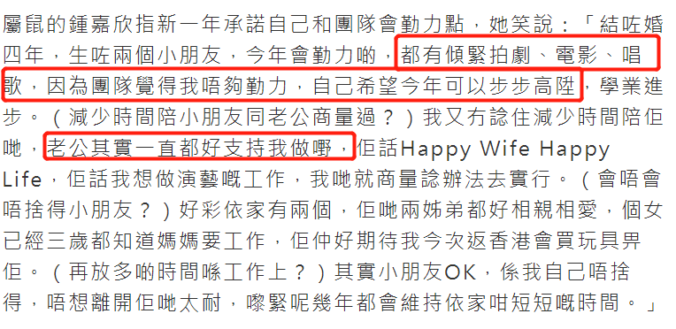对于钟嘉欣的复出计划,她老公也是表示支持,至于孩子也比较懂事,知道妈妈要工作,所以钟嘉欣可以更加投入到工作中。