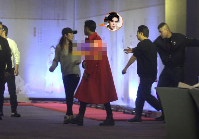 当天,张若昀则穿着红色大衣,在工作人员的带领下往各个厅走去,忙碌不停。\n