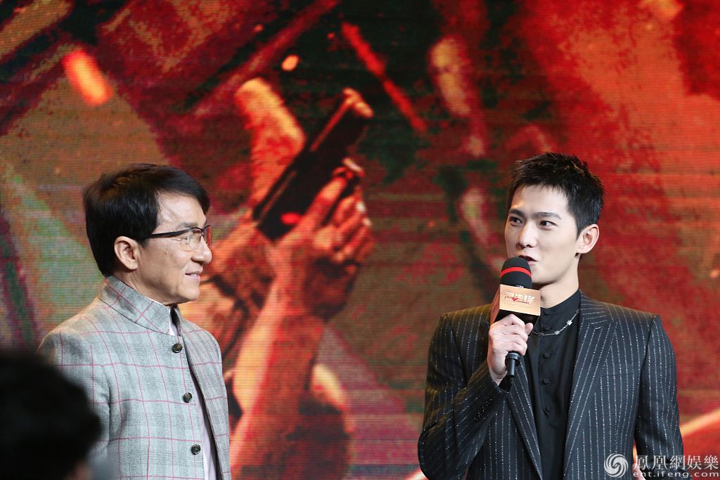 《急先锋》首映发布会上,成龙夸杨洋敬业,很多可以找替身的动作都要亲力亲为。