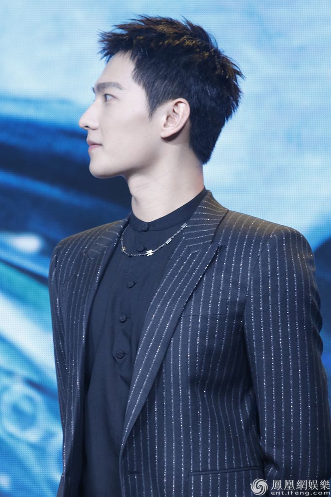 杨洋梳寸头穿条纹西装绅士帅气。