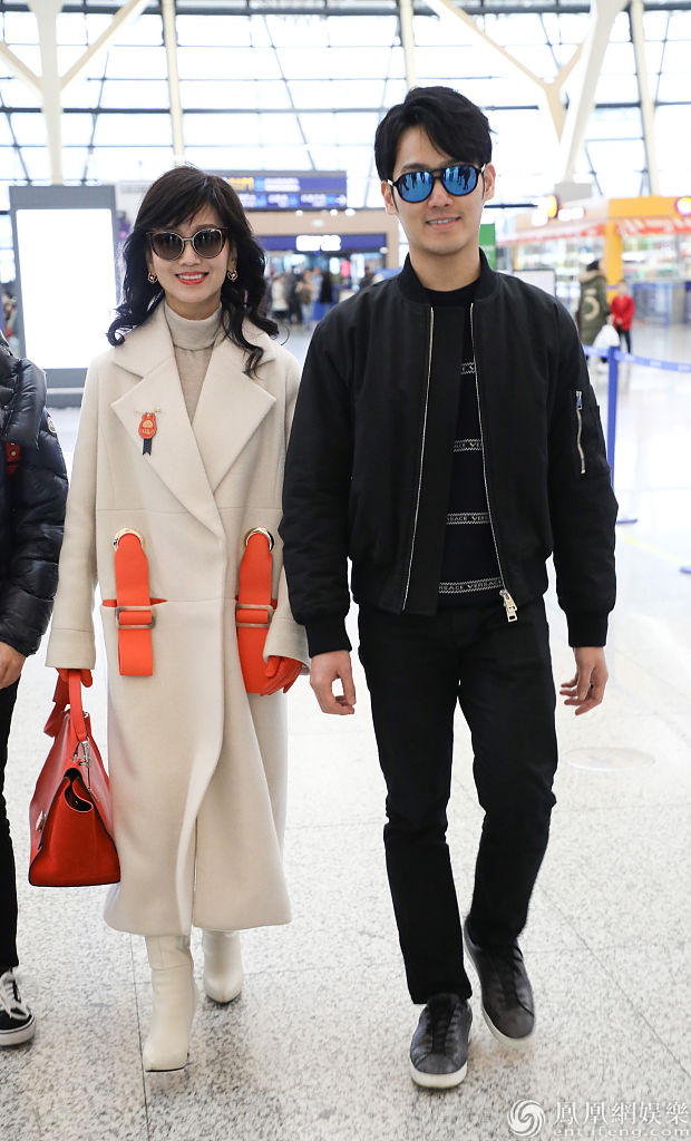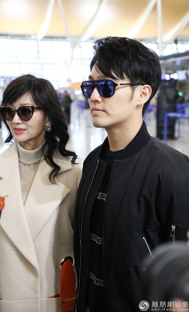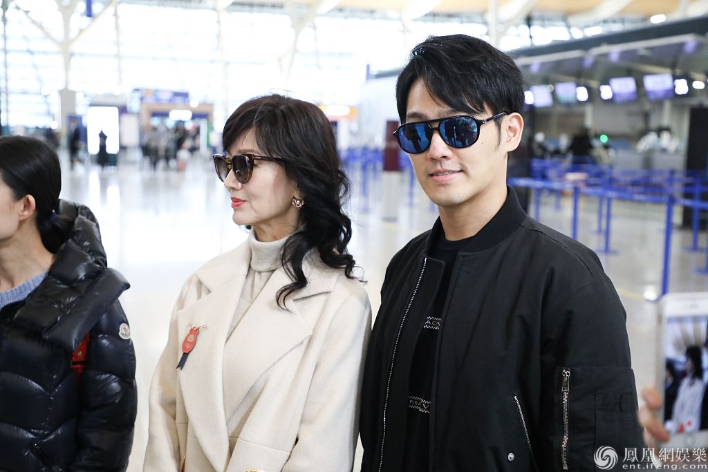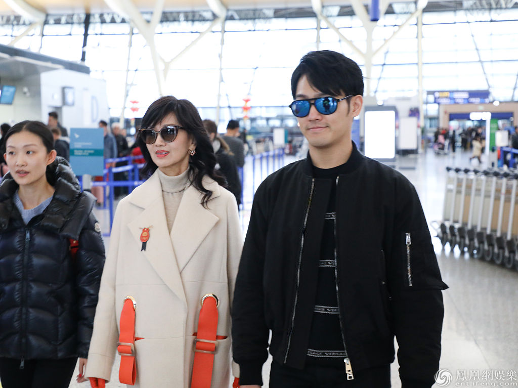 赵雅芝和儿子黄恺杰亮相机场。