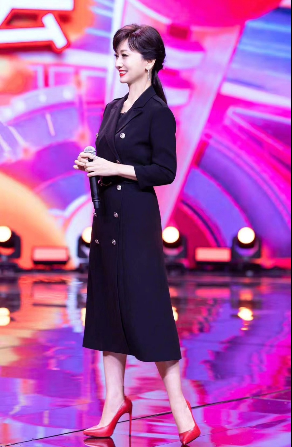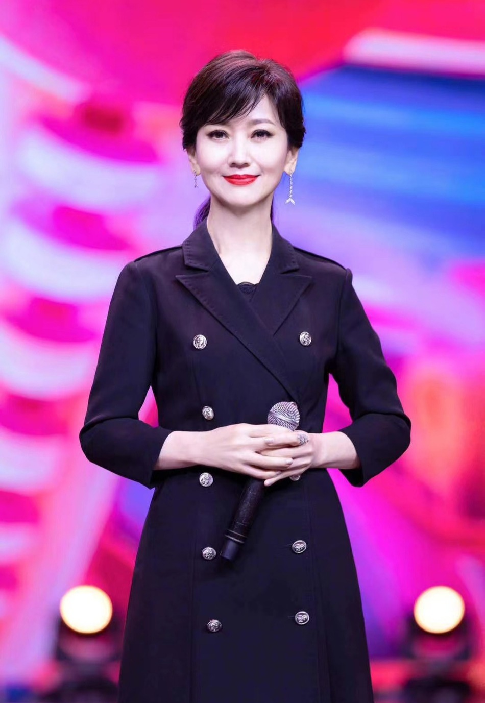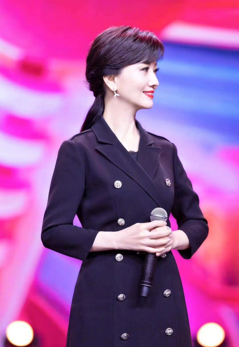 65岁赵雅芝妆容精致容颜不老,穿双排扣大衣身材窈窕,温柔知性。