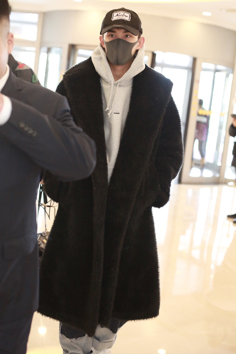 吴磊身穿毛绒大衣包裹成“小熊”,呆萌可爱。