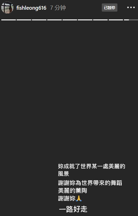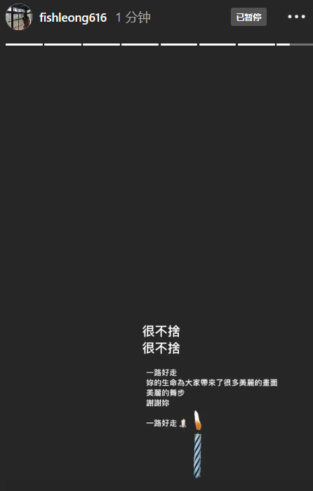 3月23日,据台媒报道,国标女王刘真病逝,终年44岁。随后梁静茹在个人社交网站发文悼念刘真,“很不舍,很不舍。你的生命为大家带来了很多美丽的画面,美丽的舞步。你成就了世界某一处美丽的风景,谢谢你为世界带来的舞蹈,美丽的熏陶,谢谢你,一路走好。”