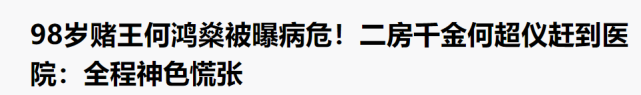 临近农历春节,赌王何鸿燊一家除了忙碌也多了一份忧心。原因是赌王的身体状况不明,随时都有可能出现变数。前两天,港媒又曝出何鸿燊突然病危,一众子女均神色慌张赶往医