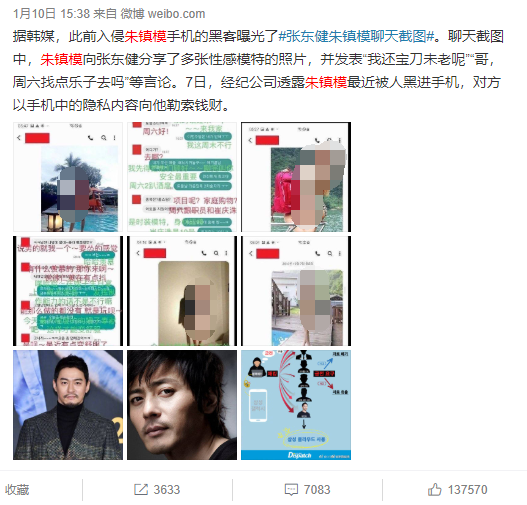 事件源于朱镇模手机遭黑客入侵,并且向他索要钱财,但是朱镇模方面却硬气地表示,要追究黑客法律责任,没想到此举却惹怒了对方,随后公开了他的手机内容,其中包括他传给好友张东健的内容。