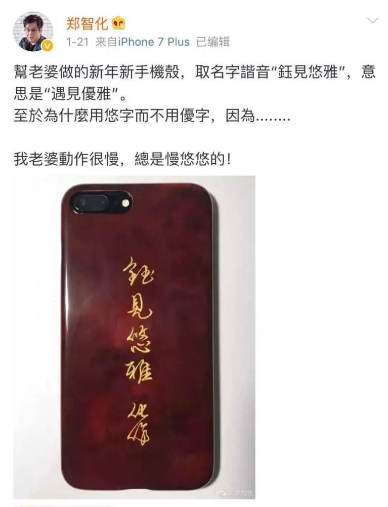 他给妻子设计了一款手机壳,壳身写着“钰见悠雅”。