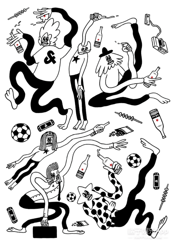 Radio WOON,是来自马来西亚的新锐艺术插画家与平面设计师,其创作灵感多数来自于音乐、朋克文化和虚伪的未来观。他以一支黑色马克笔为作画工具,以简单黑色线条画出香肠嘴和大眼睛的人物。在其创作的黑白空间里,充满着来自街头的异域文化,自在畅快的线条与灵活不羁的动态,为观者带来非同寻常的观感。曾经红爆魔都的哥伦比亚公园涂鸦墙正是出自他手笔。他因此也受到很多时尚大牌的青睐,纷纷邀约他合作设计联名系列。
