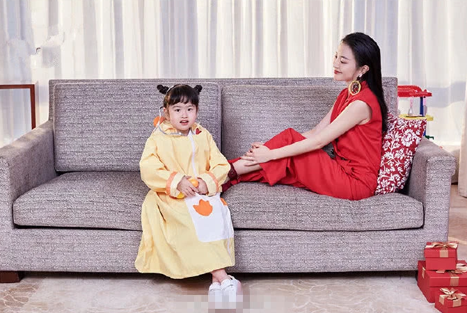 1月14日,包文婧带着4岁女儿饺子为某杂志拍摄的新春大片曝