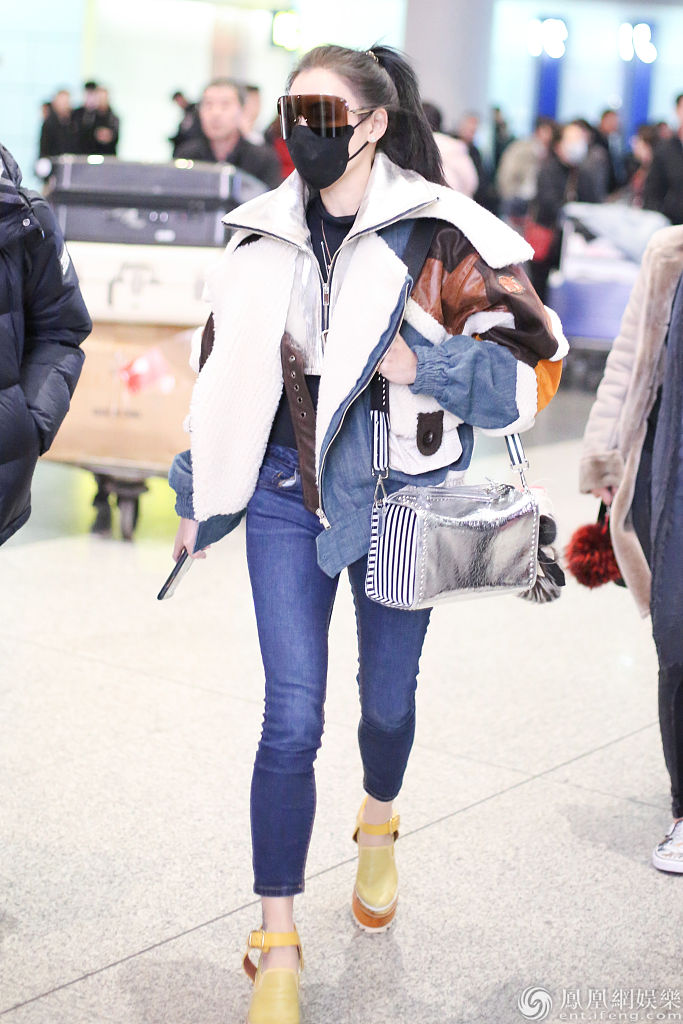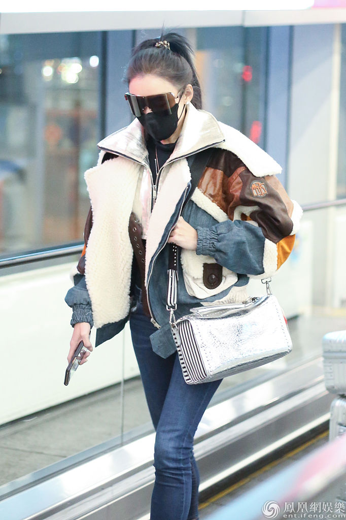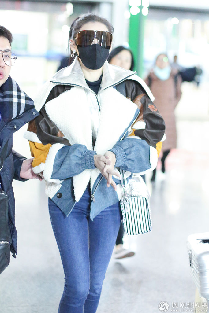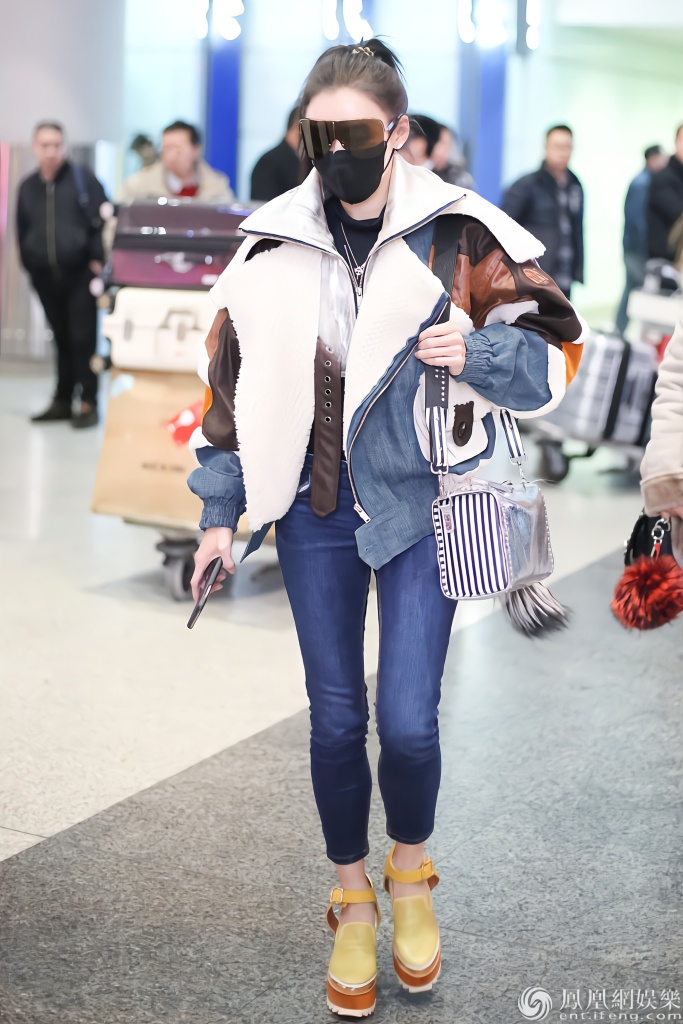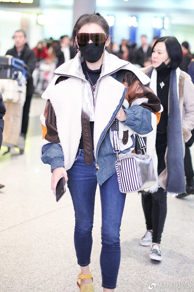 张柏芝穿牛仔服和紧身裤大秀身材。