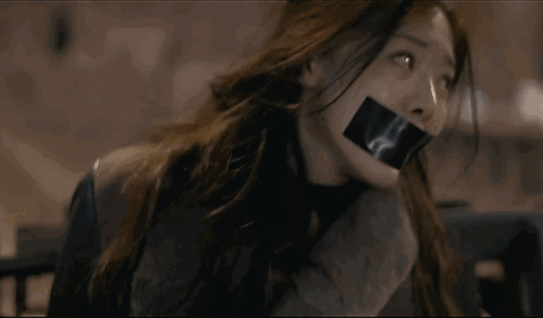 在被封住嘴巴的情况下,用眼睛传递求生欲。