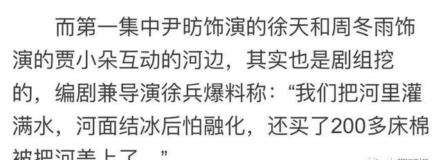 八八前文提到的年轻小情侣泡脚的河,就是剧组挖出来的。把河里灌满水,河面结冰后怕融化,还买了两百多床棉被把河盖上。
