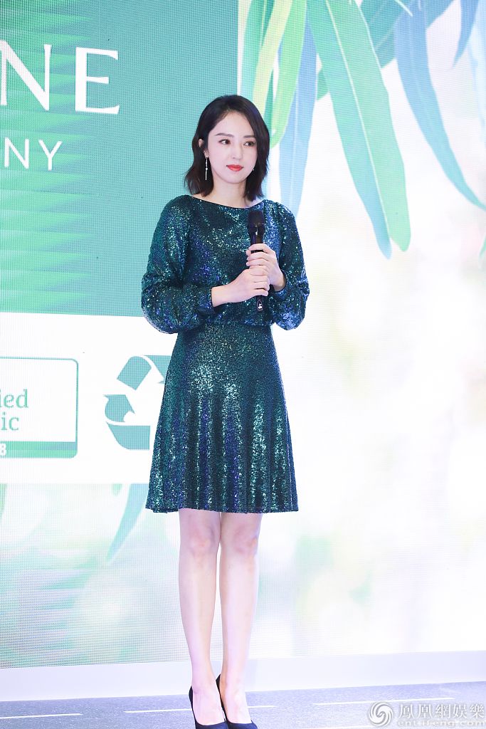 董璇身穿绿色短裙秀美腿。