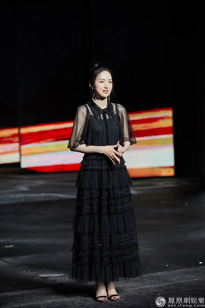 董璇身穿黑色纱裙既凸显了女人味又不失去少女感。