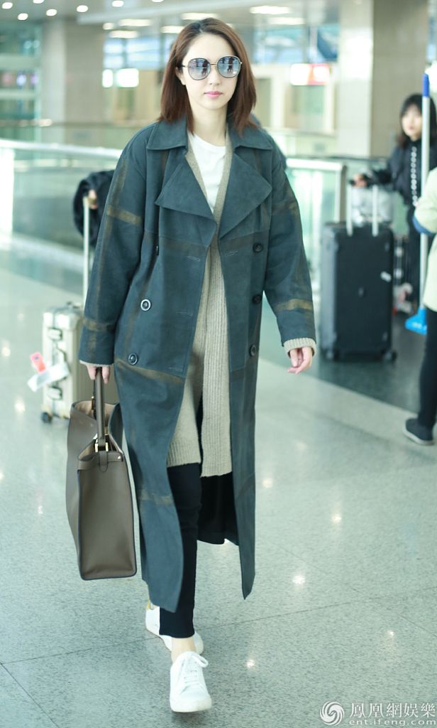 除了西装以外,董璇的街拍中风衣的出镜率最高就是风衣了。