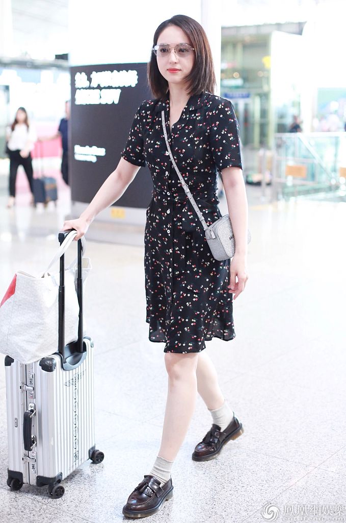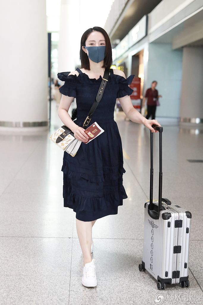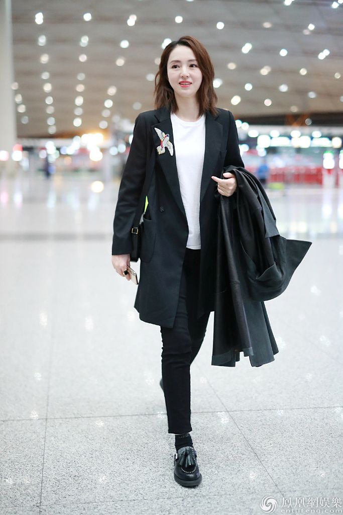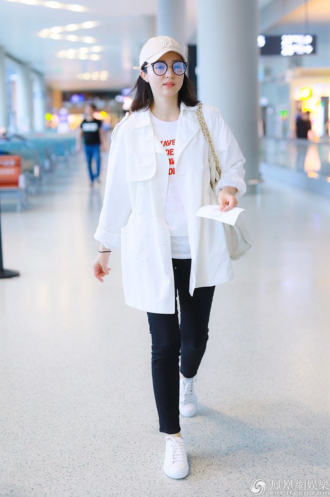 董璇黑白配清新亮相机场。