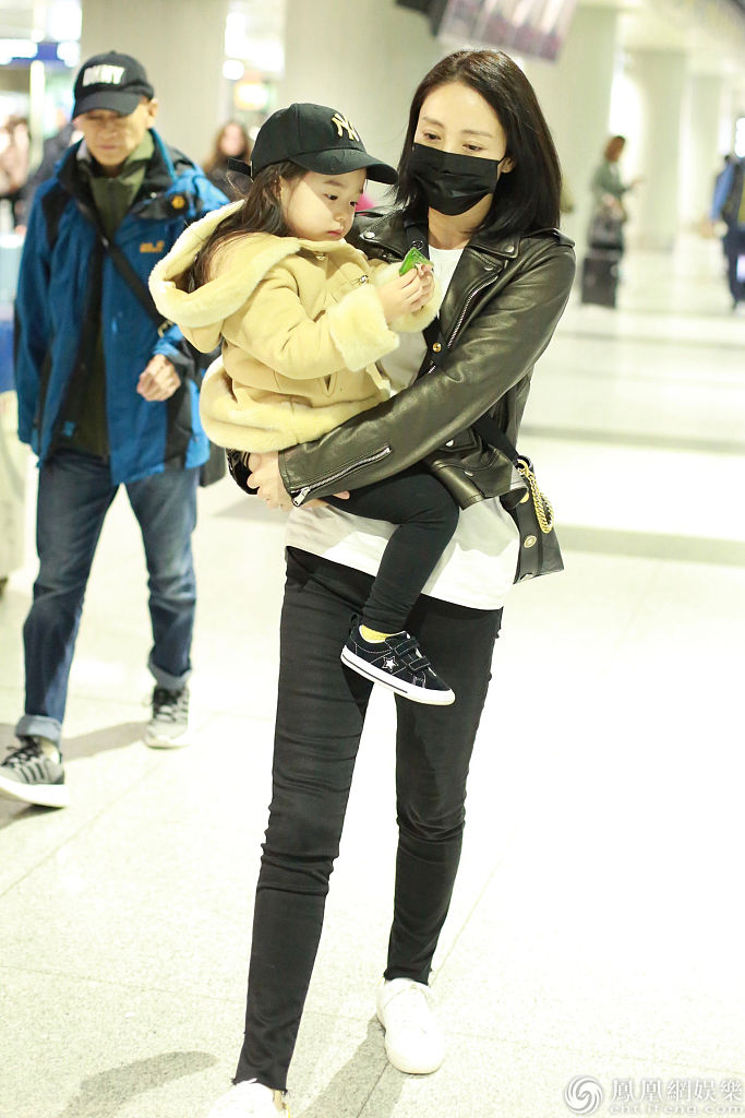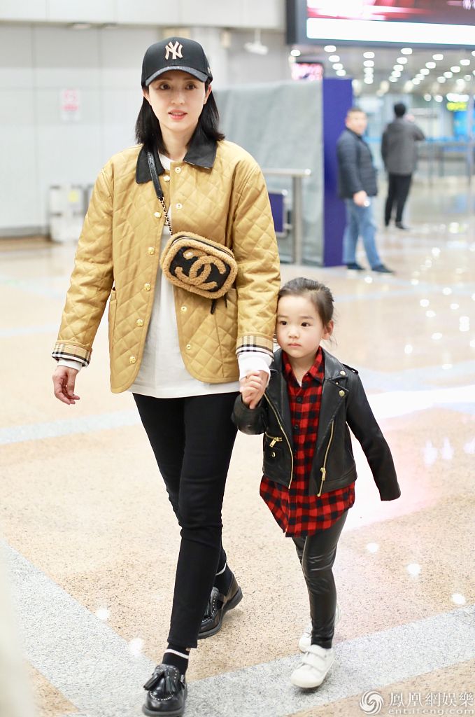 董璇一家现身机场。