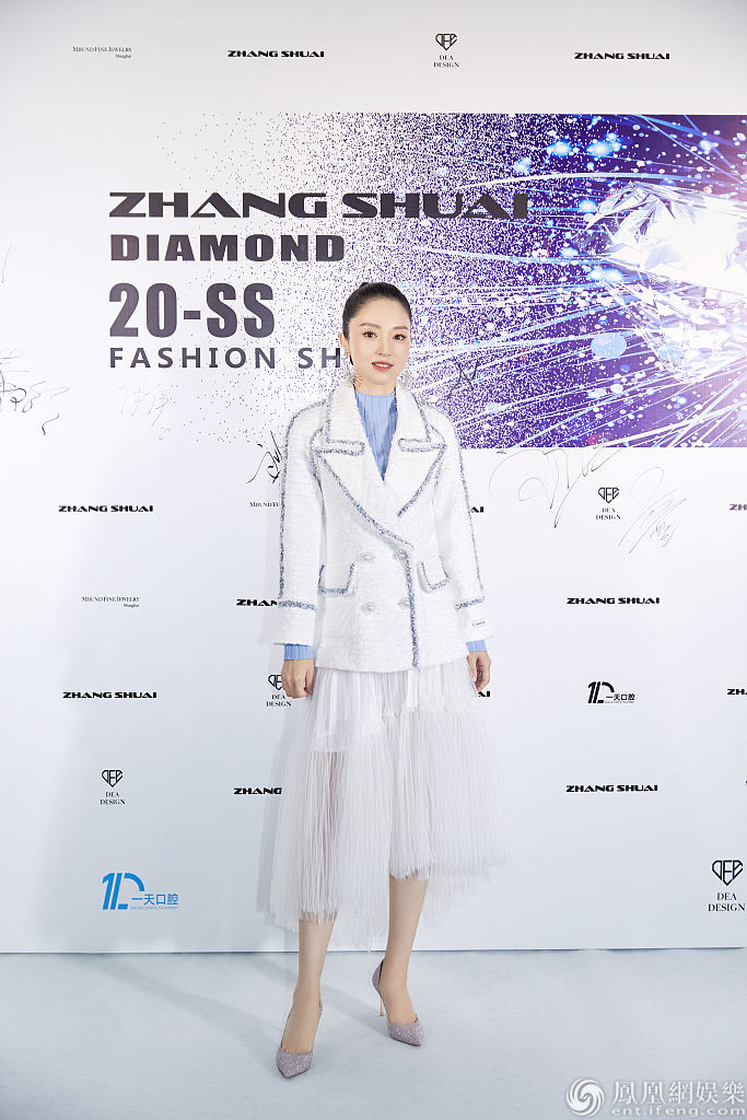 董璇穿西装搭配纱裙出席2020春夏Diamond新品发布会。