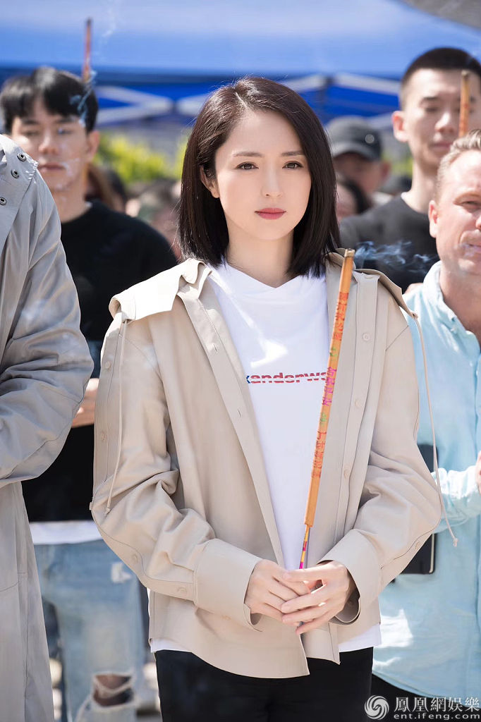 出席新戏开机的董璇,一身灰色外套也是妥妥的休闲范儿。