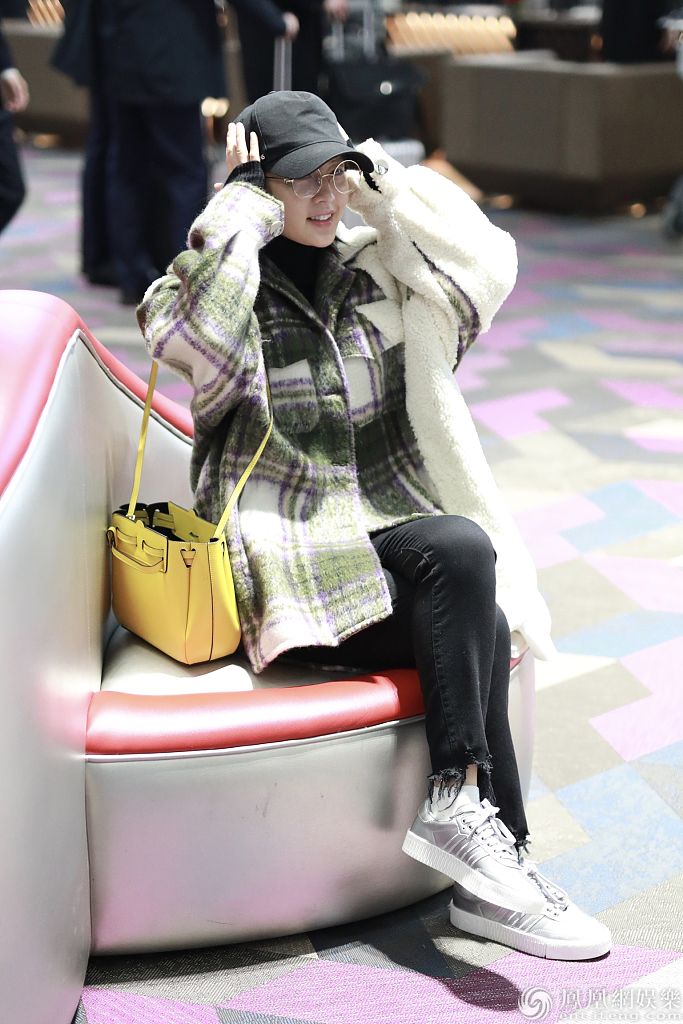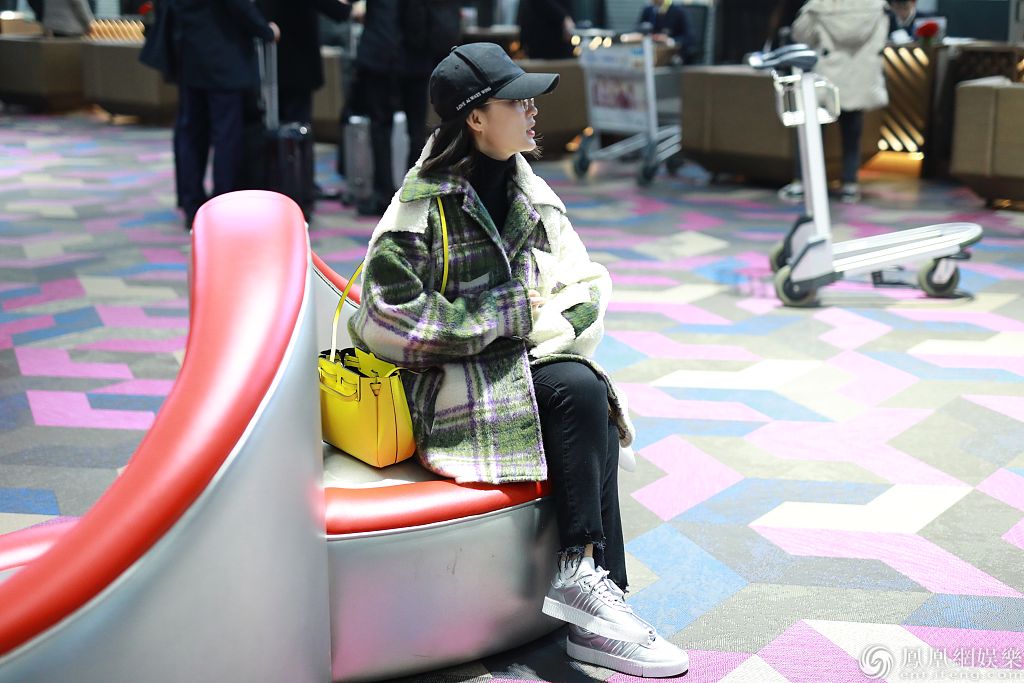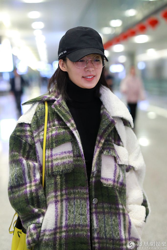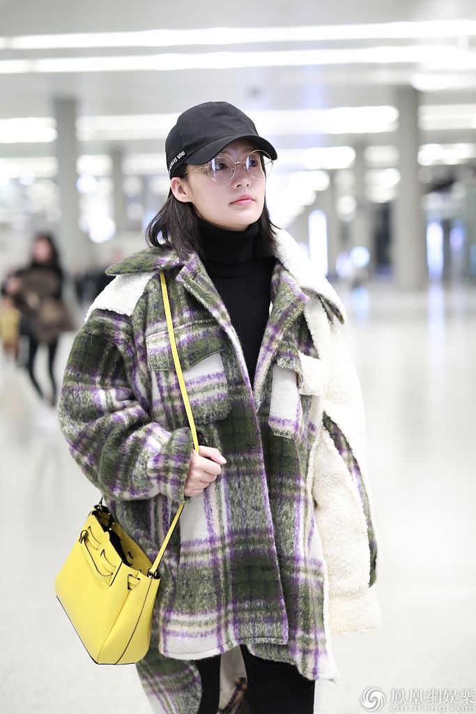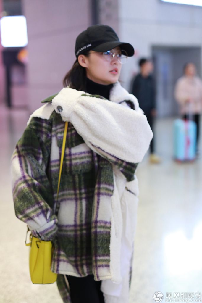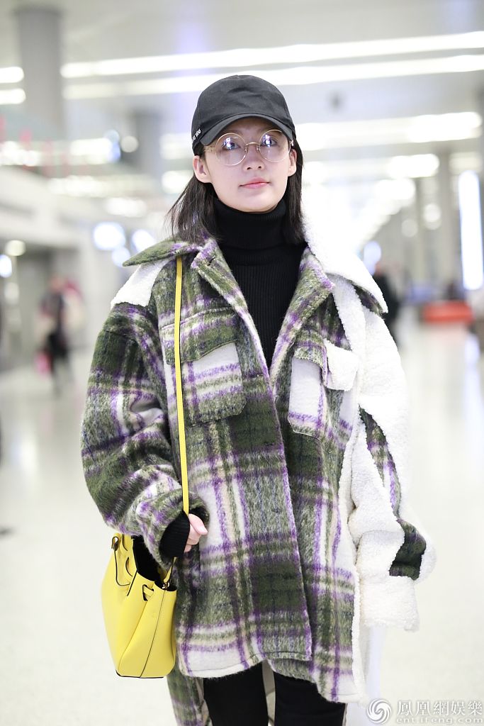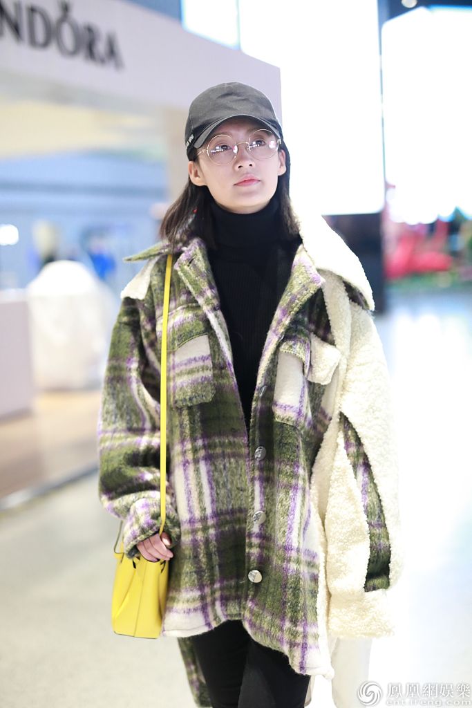 2020年1月4日,上海,李沁现身机场。她清晨化淡妆搭机皮肤白皙清丽迷人,穿着格纹外套搭配黄色包包,扶黑色鸭舌帽动作少女可爱值u