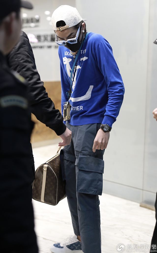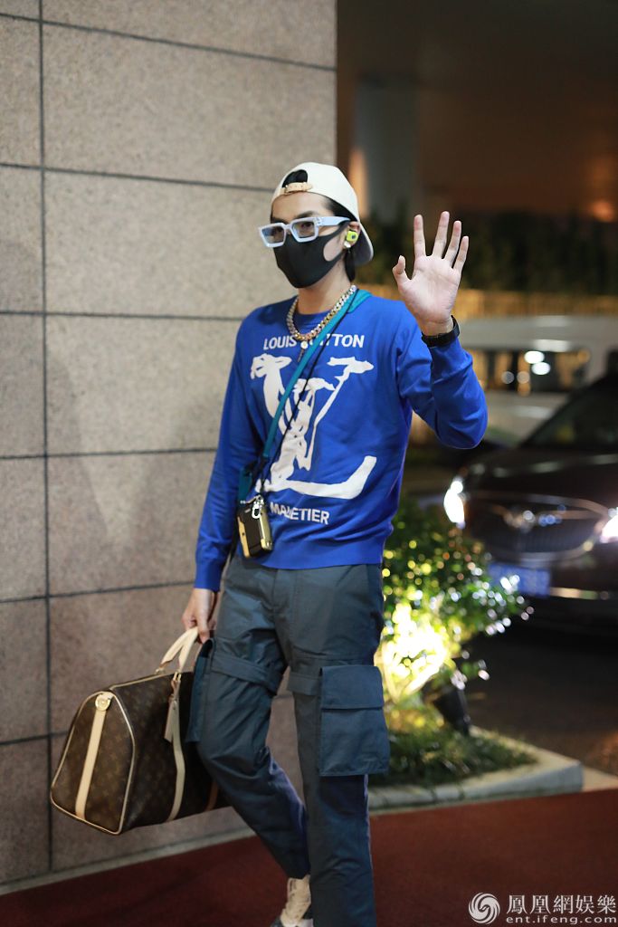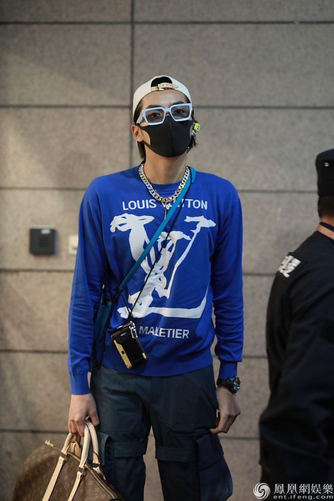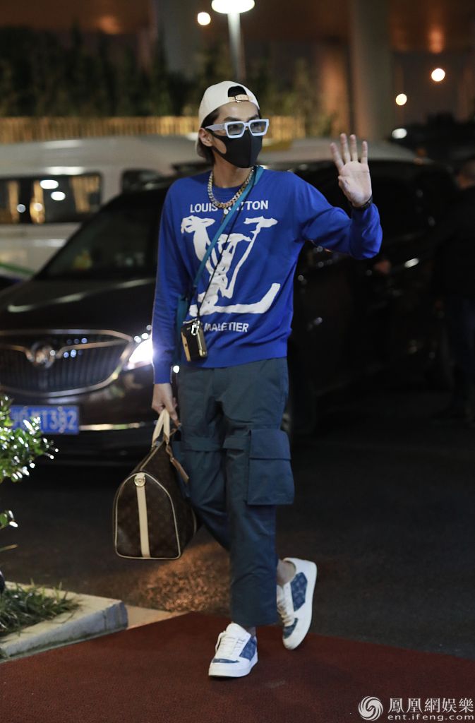 2020年1月13日,上海,吴亦凡现身机场。他穿着蓝色休闲卫衣前往巴黎看秀,反戴鸭舌帽和白色墨镜少年感十