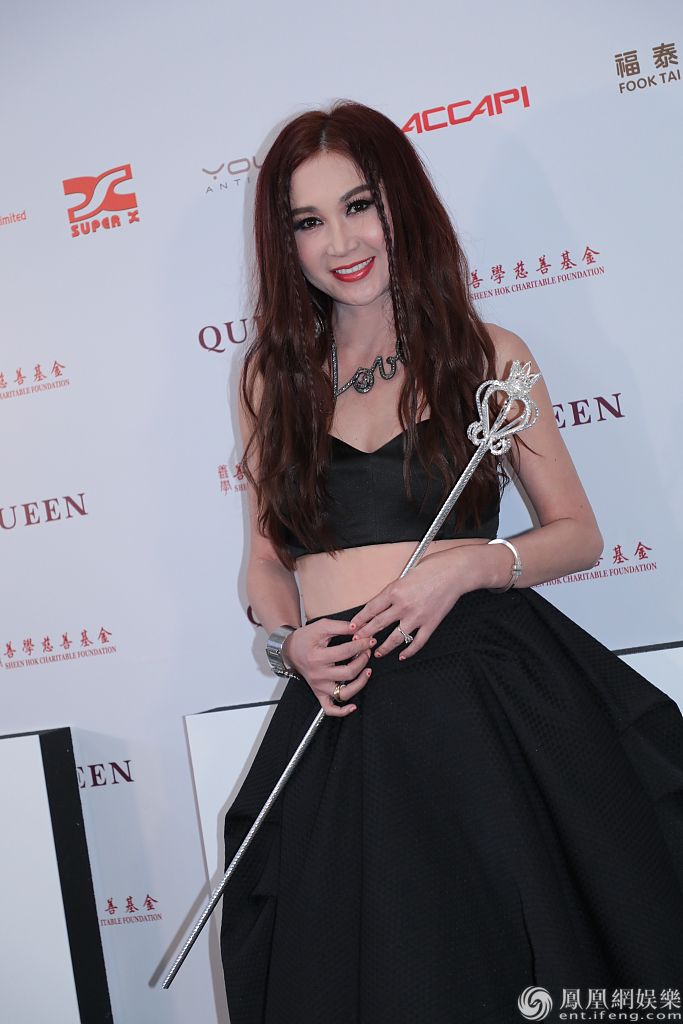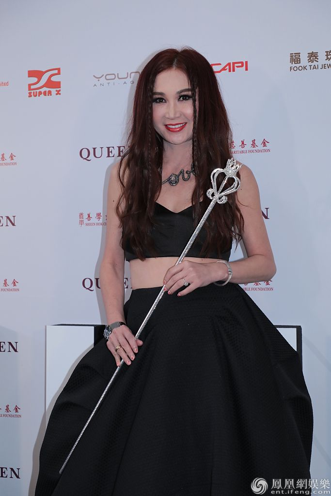 温碧霞穿露脐裙拿权杖典雅大气。