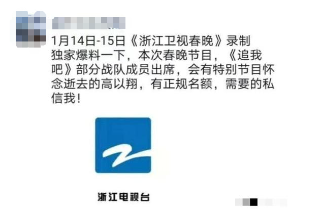 日前,有人在社交平台发文爆料称,浙江卫视正在紧锣密鼓筹备春晚。并透露,此次春晚除了邀请到了众多重磅级嘉宾来演出以外,还特意请来了《追我吧》部分战队成员出席,以制作特别节目来纪念已故的高以翔。