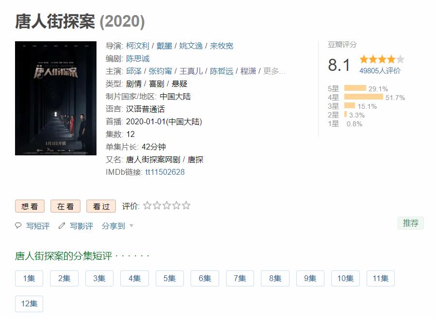 网剧版《唐人街探案》开播之后,在豆瓣狂砍下8.1的高分,已经远远超越了前两部唐探的电影版。