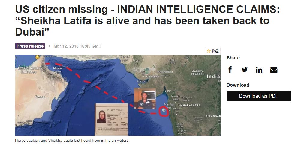2018年5月,迪拜公主拉蒂法的求救视频让举世震惊。