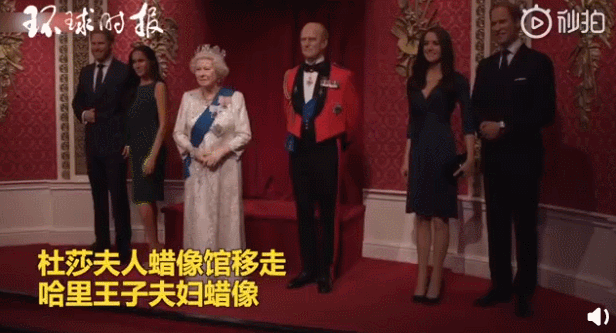 哈里王子刚说完要“退出王室”,隔天就和梅根被双双移出蜡像馆的王室布景了。