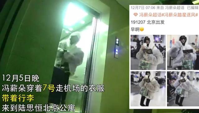 而11月27日,冯薪朵在直播中说她12月6日没有工作,要在家里睡觉,但12月5日晚就被拍到从外地飞回北京,风尘仆仆的推着行李去了陆思恒家,不一会儿陆思恒也回到了家中,两人待了一天一夜,期间没有出过门。