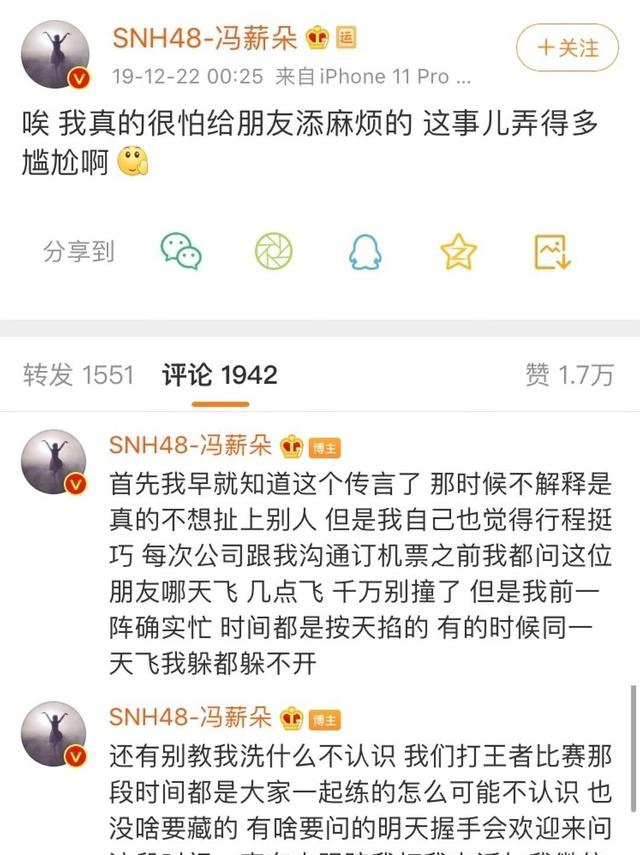 冯薪朵也第一时间辟谣称,她跟陆思恒只是朋友,她早知道他们俩之间的绯闻,但不希望牵扯上朋友所以一直没有解释,至于那么多重叠的航班信息,她称只是巧合撞了,她想躲都躲不开,她不否认自己和陆思恒相识,但只是通过游戏比赛相识,说得信誓旦旦,粉丝也各种心疼安慰,说她受委屈了。