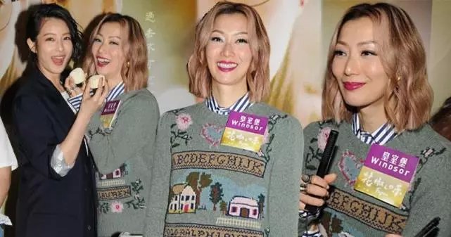 郑秀文染了一头金发,坐在甘比旁边,对比甘比跟钟楚红,她显得非常瘦。