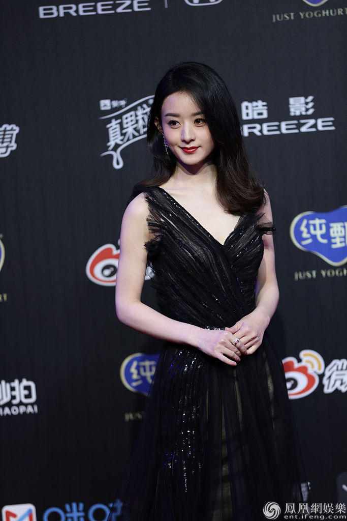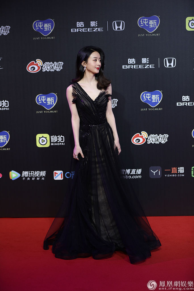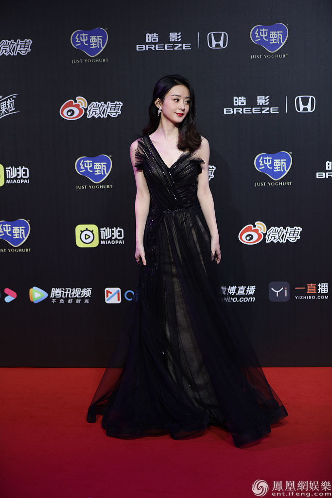 赵丽颖以一袭黑天鹅纱裙亮相,身材纤细气质优雅状态极佳。