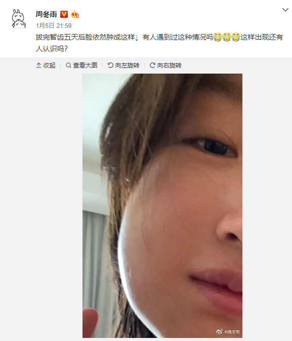 日前,周冬雨因拔智齿脸肿,曾发文求助。