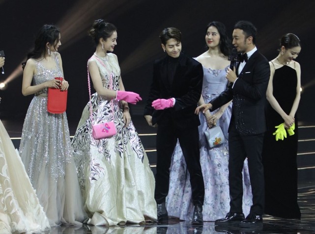 2020年1月11日,北京,杨幂、刘亦菲、杨颖(Angelababy)、佟丽娅获封“年度女神”荣誉,众星亮相2019微博之夜现场。刘亦菲举着搪瓷缸力证脸小,小动作敲可爱。