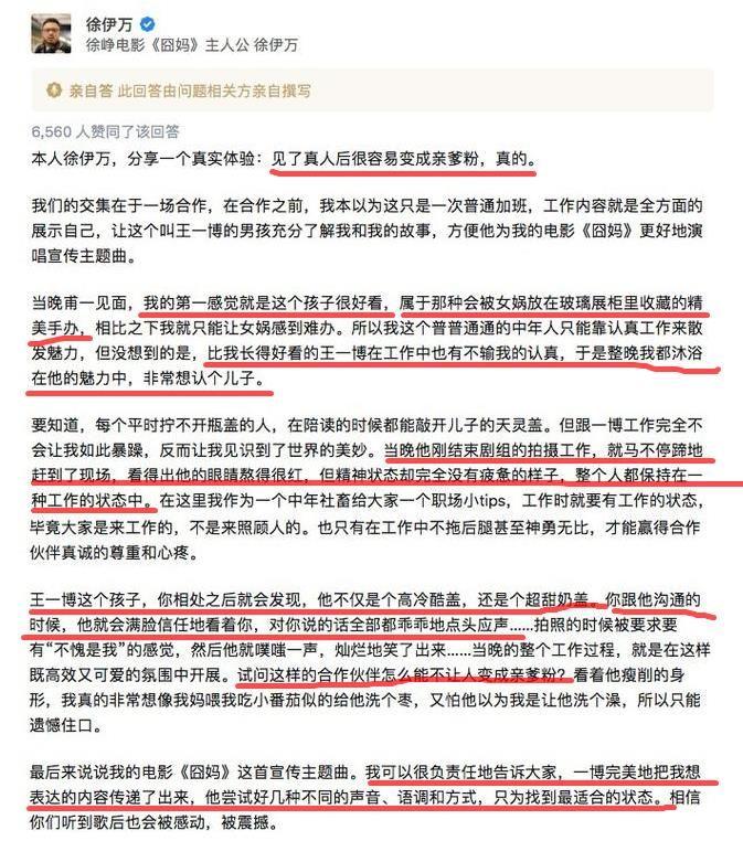 徐峥在某问答社区上发长文大谈见到王一博的感受“见了真人后很容易变成亲爹粉!”