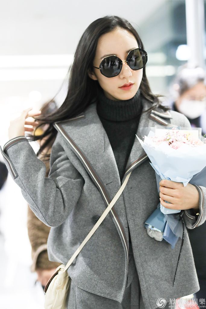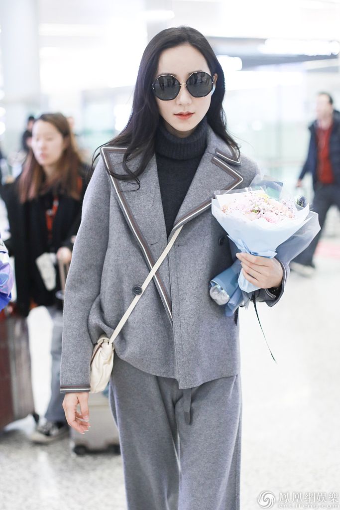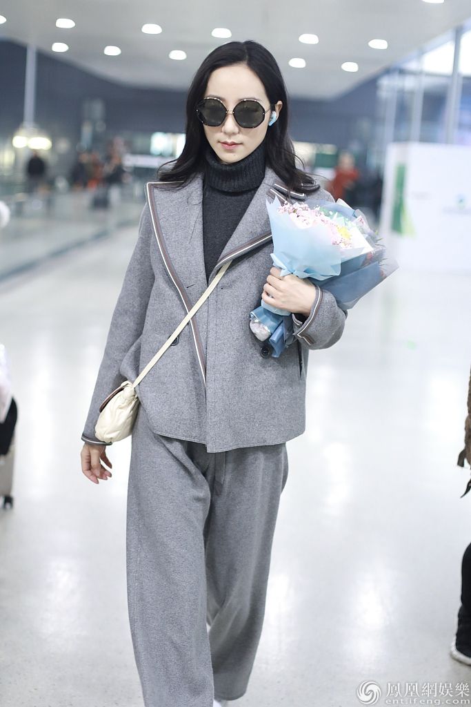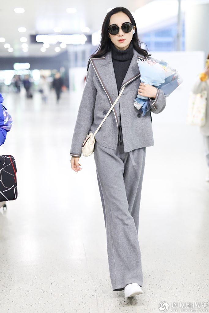 2020年1月11日,上海,韩雪现身机场。她穿灰色套装长腿瞩目,手捧鲜花人比花娇,随意撩发美成风景气质迷