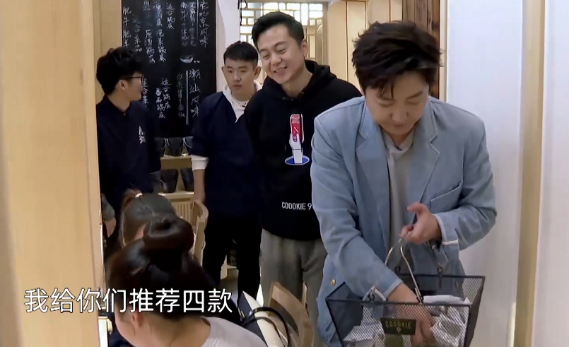 这是最新热播综艺中的片段,当时,郭京飞店里正是空闲的时候,他想出了拿着饼干去别家店销售的主意,随后,拿着一个篮子装满饼干就开始行动了。
