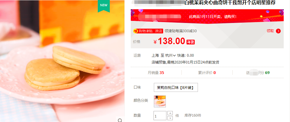 确实,在官方旗舰店中,白桃茉莉味的曲奇饼干8块就卖到138元,一块要17.25元,的确贵得很。