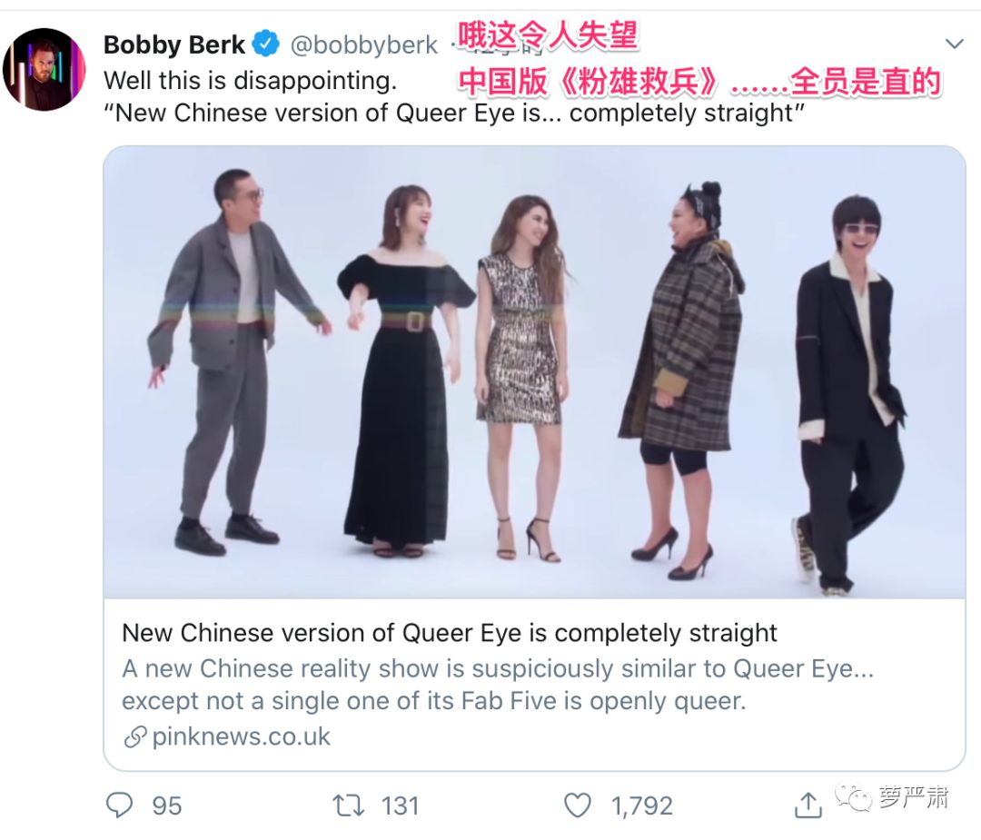 今天,原版节目中的室内设计担当Bobby Berk在自己的社交网络账号转发了一篇嘲讽山寨版节目的文章。