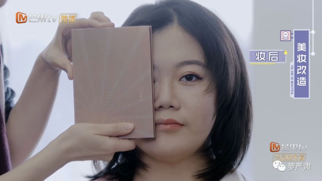 失败的尝试之后,剪发、化妆,都是专门的造型师来的。也不知道这整档节目吴昕作为外貌改造者到底能改啥。非要给没有化妆的人强加一个妆容其实也没什么意义,她选择的生活方式没问题,何必非要化妆呢?