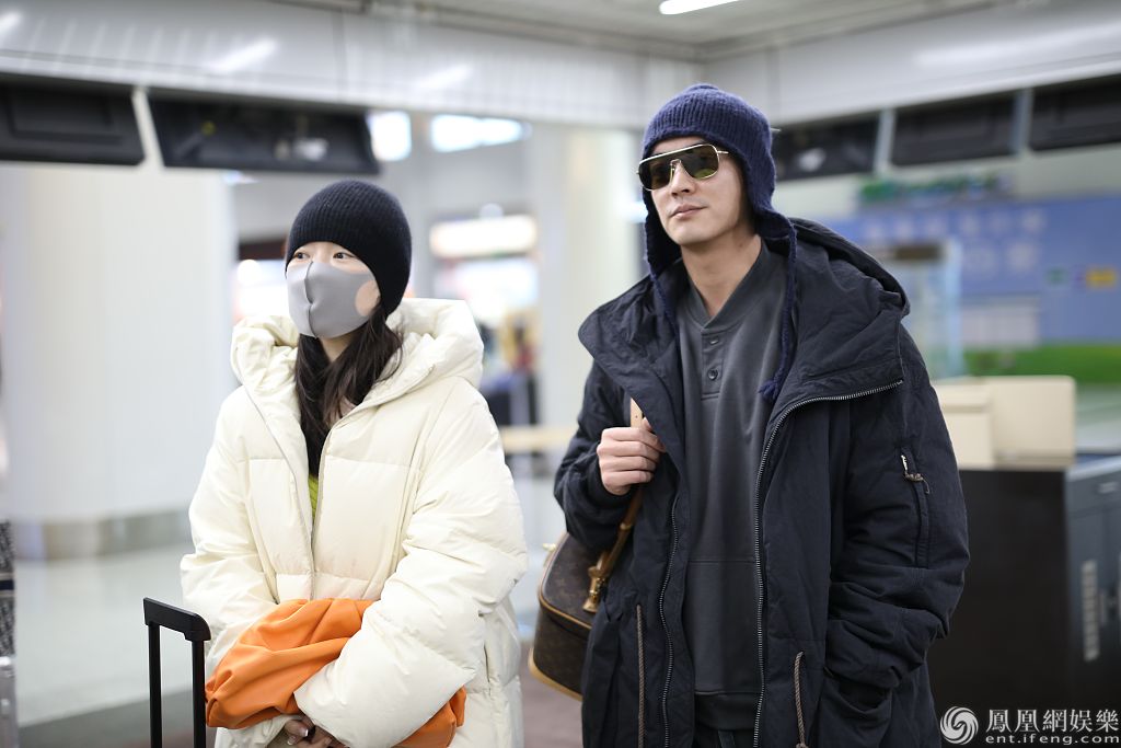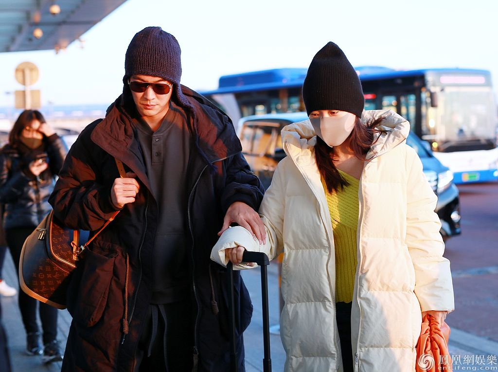 杜江霍思燕携手亮相机场。